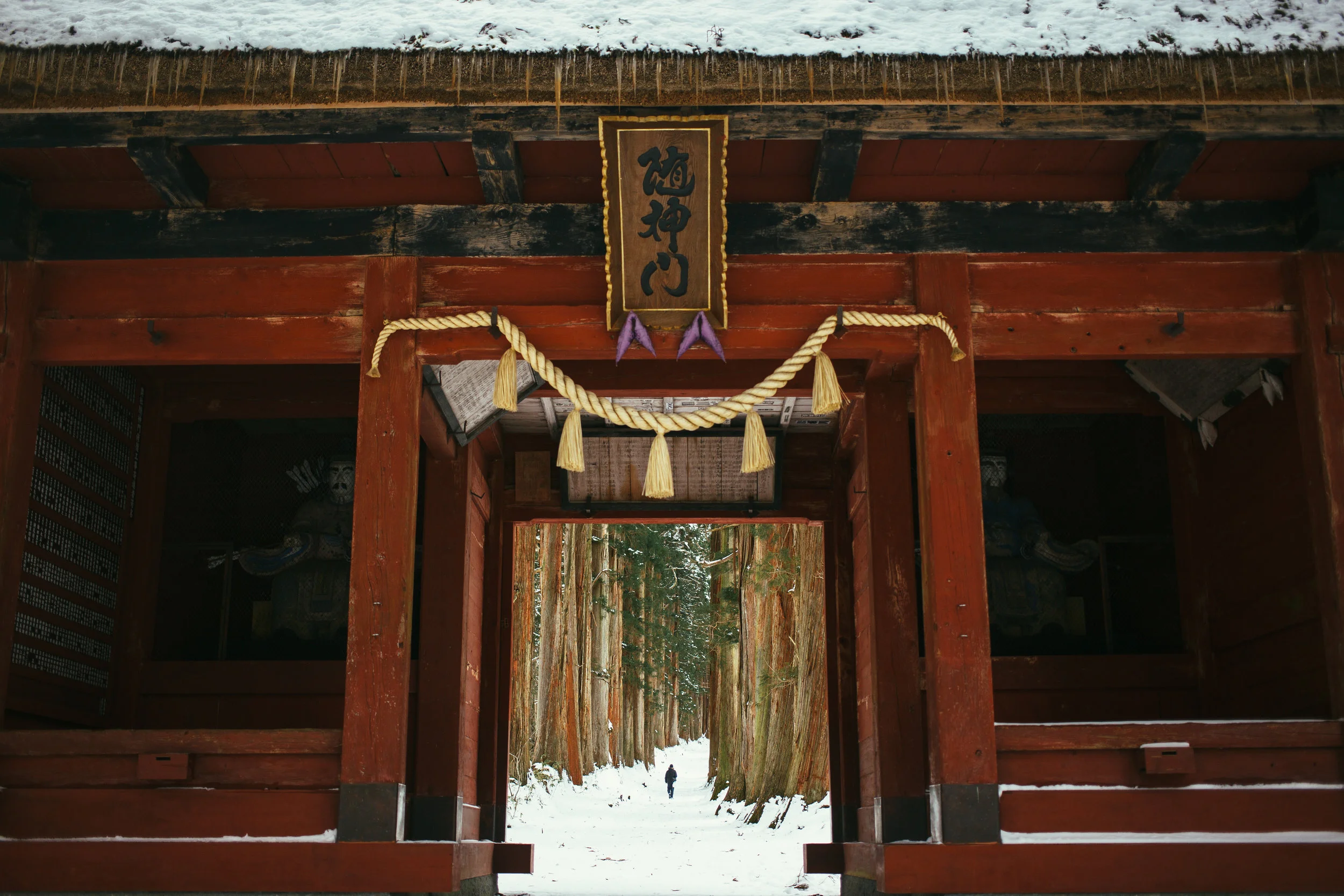 Nagano, the main hub to get into the mountains on the main island is crisp and clear. Kids all bundled up hold hands walking the sidewalk, brightly coloured and topped with matching hats. We stay long enough for me to browse the bookstore in the station and sip a coffee. Not being our final destination of the trip to the mountains. The next bus pulls in, A city bus with only a handful of people going to Togakushi; a small mountain town for hiking access, soba and Wasabi. Two out of the three I love, feel free to guess which. There are no local busses in the winter leading to the shrine we wanted to visit. But the hike through the birch trees covered in snow was well worth it. The tori gates, one stone and one wood lead to a trail lined with massive red cedars, guiding us towards the mountain shrine in snow. We wolfed down Soba and tea and headed back into Nagano. Staying one night at the Zenkoji temple to take part in both the Shinto and Joto sect's prayer Ceremony at six am. Meditating right in front of the monks, chanting unanimously.