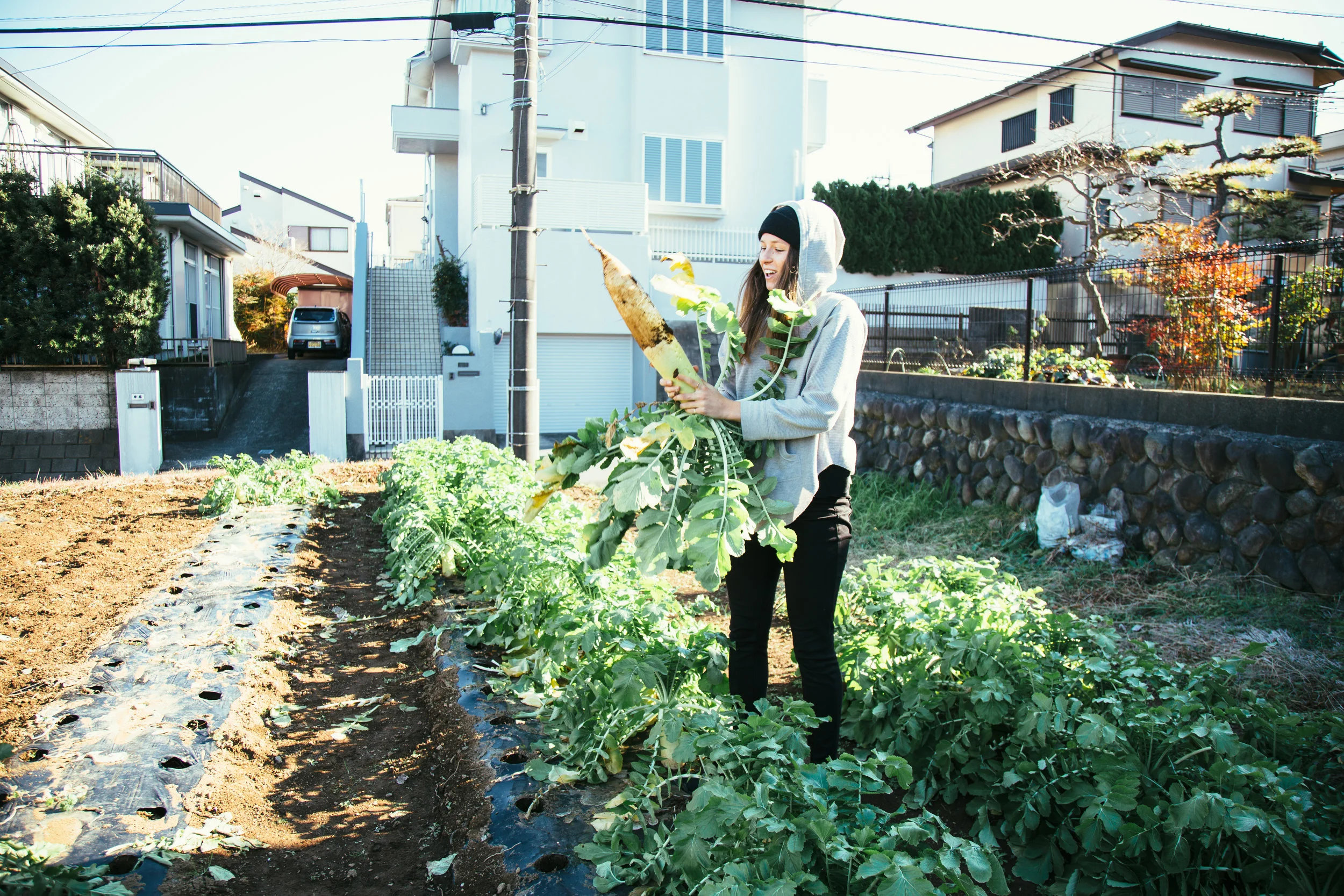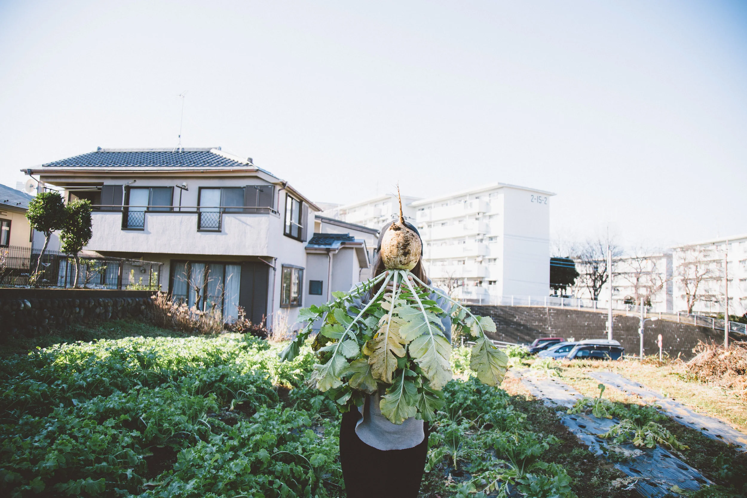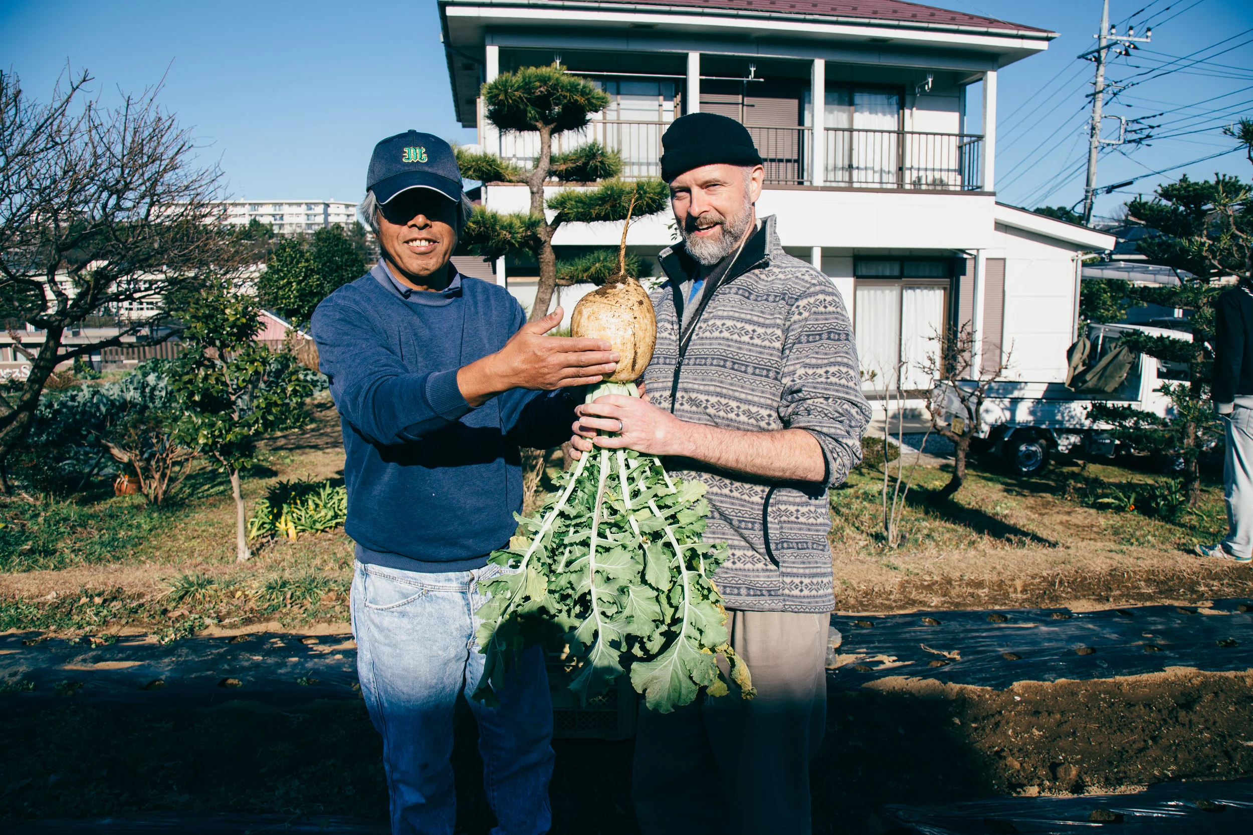 The day felt much like any other family gathering, even though I couldnt pick up any of the conversation and nobody except my aunt and uncle could speak english the feeling was there. Everyone was included, generations gathered and caught up, laughing about stories and jokes. Enjoying the Gai-jin helping them make Mochi. It was a wholesome time, and I ate a lifetime's worth of mochi in one day. The people in Japan are passionate about what they love, whether its fashion, technology or farming they do it with their whole hearts. They put everything they have into their passion and love to share it with others. I was so happy to be a part of what these people had here, the love they had for growing and making good food, sharing it with the people around them. As I took a break from rolling mochi my uncle comes up and tells me to grab my camera, were going to the fields. I wasnt sure what we where doing until we arrived, a small field just five minutes drive from the house. Rows and rows if daikon lined the cold soil, massive and green. The farmer pointed at the daikon and gestured for me to pick one, and a big one at that. We wandered the rows until one jumped out at me. The daikon was the size of my head, Big and fat. Enough for a month of Daikon salad and soup. It wasn't enough, he led us over to the other side of the field. My uncle told me he said we could pick another, one of the much more expensive and difficult to grow round Daikon. The generosity was amazing and I thanked our new friend for it, finding the biggest Daikon I could. Heaving it out of the soil to find it the size of my head. Give me a month in Japan and I've come to love the vegetable.