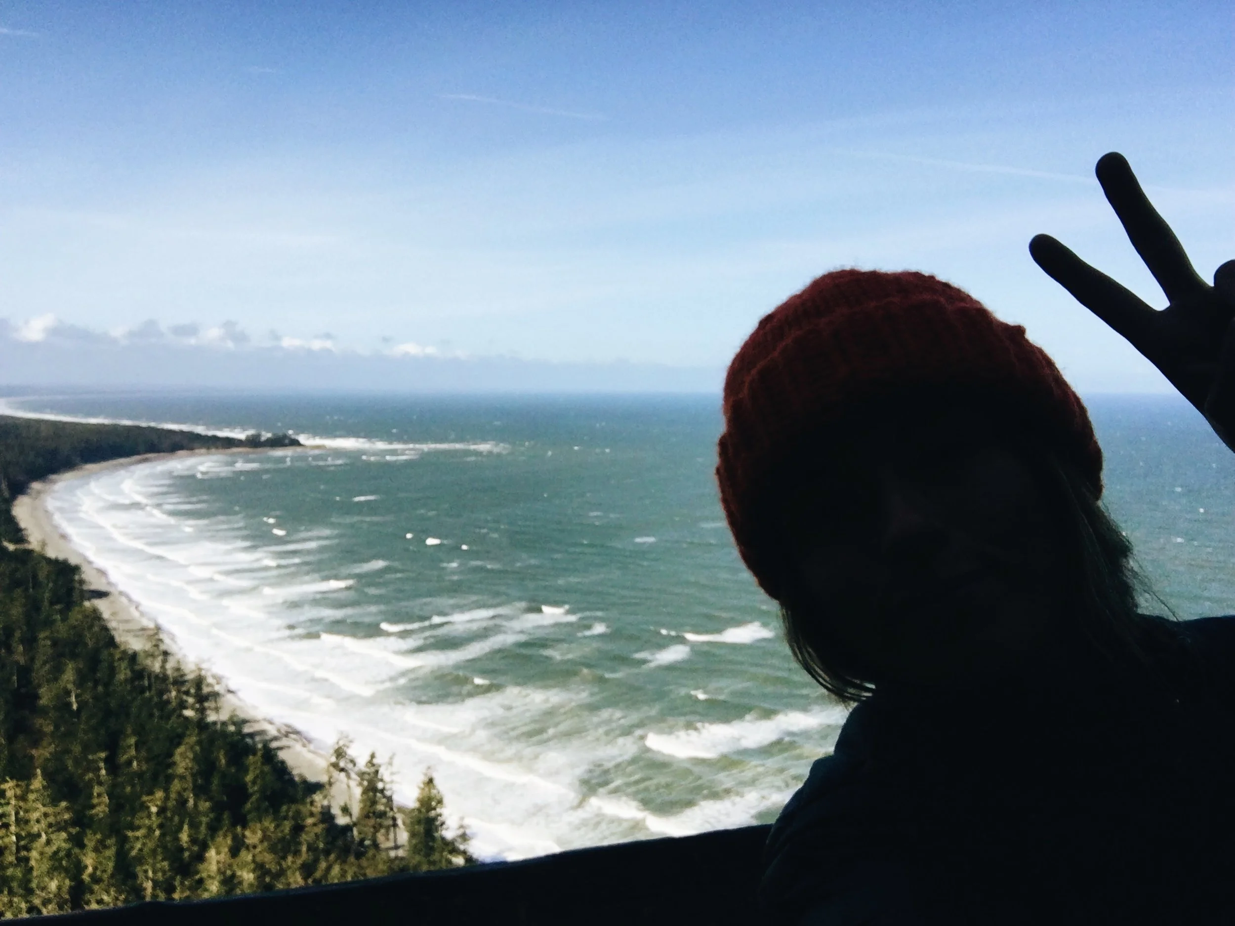 But the further I biked towards Tow Hill the more the sun went down. And down. And I kept biking. And biking. It felt like I was going into the abyss. Houses dwindled and I started to worry that while I was simply just trying to get to camp I would pop a tire or break my chain and I would have no way out of it. I tried talking to myself, telling myself “it’s fine”, “you're almost there” and “You're okay, you have everything you need”, but as per the norm, talking to oneself doesn’t really comfort a person. I worked myself up more and more. I don’t even know why, I had food, water and everything I needed, I was dry, I was for all purposes fine. I was anxious for the sake of being anxious, but as soon as I was going to lose hope, I was there. I pedalled into the Agate Beach campground, wind HOWLING against the shore and laughed pathetically, tears not only from the wind but the dirt welling in my eyes. There was a windowed shack with other people’s stuff in it, they left a note saying they would be back soon. And as I dropped my bike inside and walked to the shore of smooth round pebbles I burst into tears. Laughing and crying and staring at the beautiful sunset. I am fine and I made it.